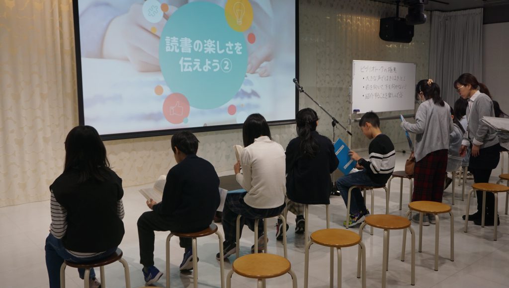 今年度は10人が参加。様々な図書館の仕事を体験し、最後に自分のおすすめ本の魅力を紹介する「ビブリオトーク」に挑戦!ご家族の皆さんに見てもらいました。大勢の観客を前に緊張しながらも、終了後、受講生には笑顔がたくさん見られました。受講生のみなさん、お疲れ様でした!
