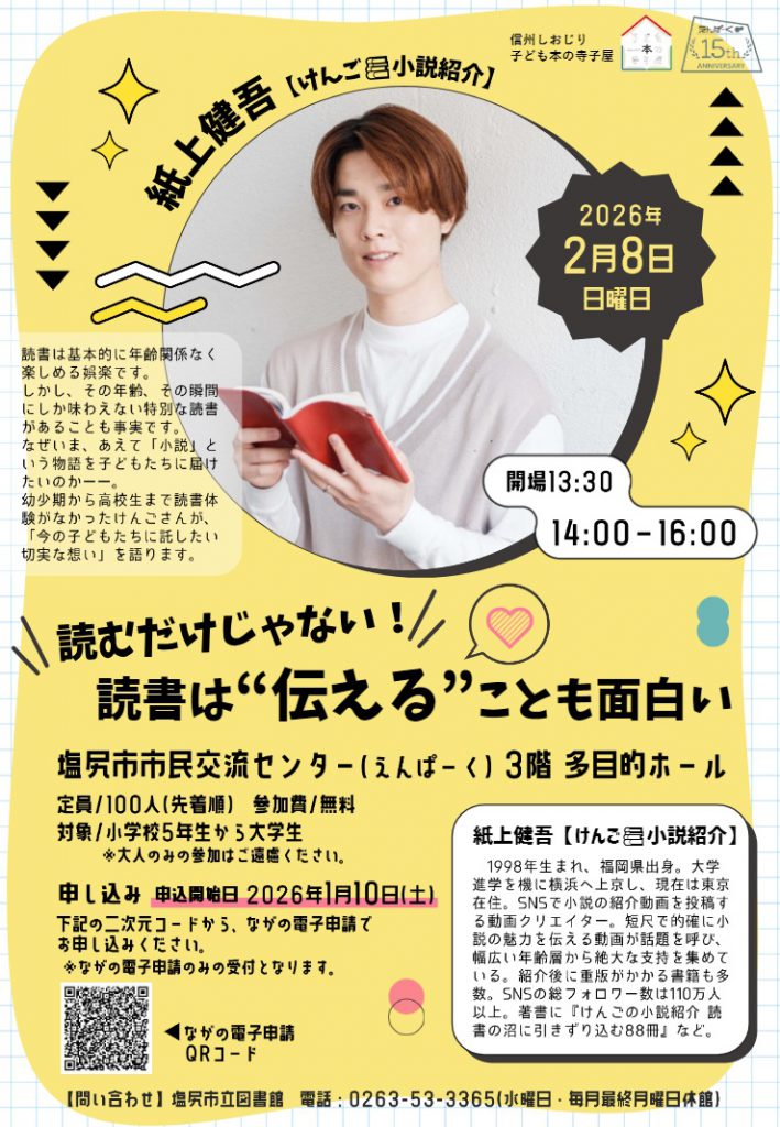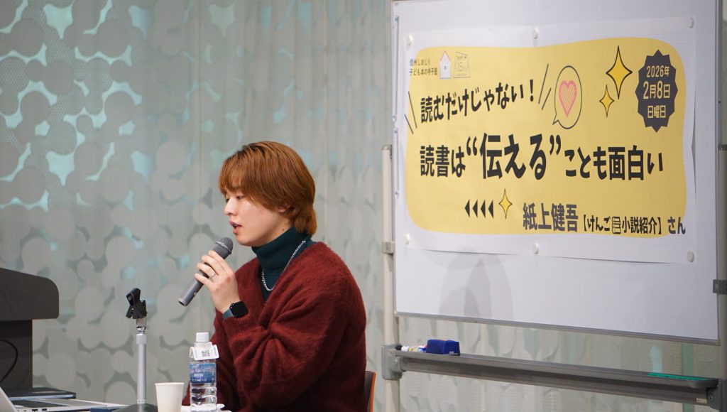 2月6日(日)、SNSで小説の紹介動画を投稿している動画クリエイター・紙上健吾さんをお招きし、講演会を開催しました。
