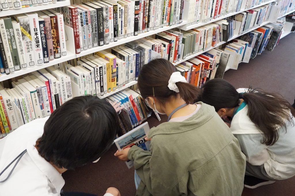 制限時間内により多く本を見つけられたら勝ち!ということで、2チームに分かれて様々な棚の本を探しました。